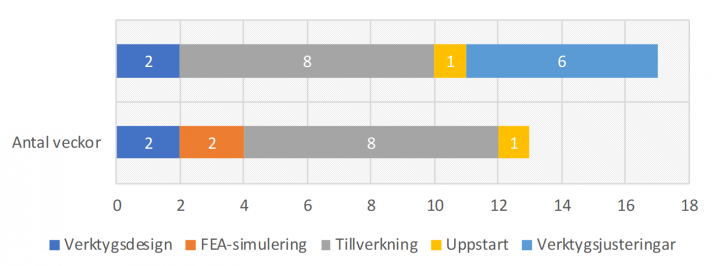 Exempel på tidslinje för verktygsdesignprocessen med eller utan FEA-simulering: